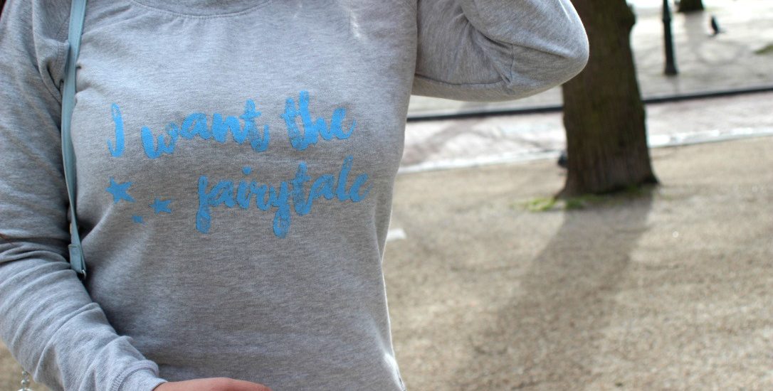 A couple of months ago, I got to pick out a sweater from the online shop OKE By Me and I ended up choosing this whimsical “I Want The Fairytale” sweater. I remember taking these pictures with my cousin Carolyne in the center of the Hague on a day that was extremely windy. I also remember people staring at me all crazy, because I was probably the only one walking around without a heavy coat on lol. But I chose these specific shooting locations, because I thought the majestic backdrop would fit in nicely with the fairytale saying. The sweater itself is super comfy and very versatile. Maybe next time I’ll decide to wear it, I’ll pair it with a cute midi tutu-skirt and dress it up! In case you’d like to get this sweater for yourself, you might want to make it over to the Oke By Me website quick because this item is currently on sale! Thanks again, Kim! 🙂